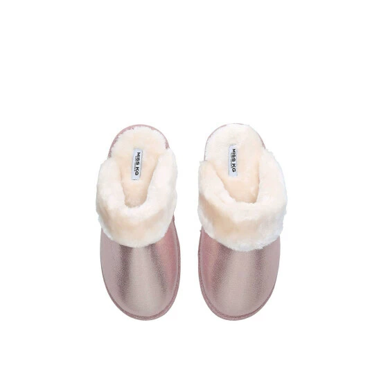 Miss KG presents the glamorous Anya Mule Slipper. Anya is designed with off-white faux fur inners and linings combined with a metallic closed-toe on top of a pink mid-sole, generating that extra warmth and comfort.