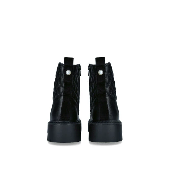 Izzy from Miss KG is a biker boot with a black upper featuring quilted sides, a lace up front and a chunky lug sole.