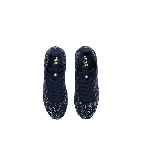 Glamour comes easily with the Katy sneakers from Miss KG. The knitted style navy upper is splashed with small silver jewels and pearl stud on the tongue tab. The rounded toe provides comfort above a two toned sporty sole with gunmetal panel at the heel.