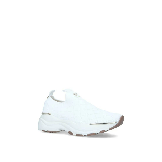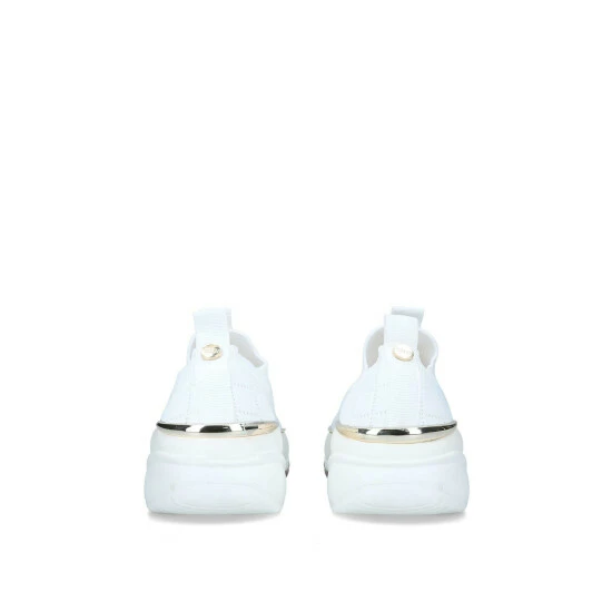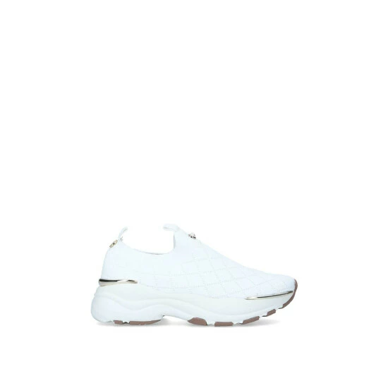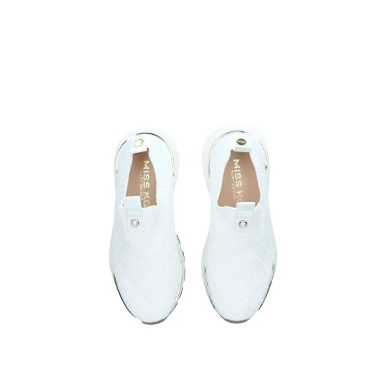 Slip into comfort with the Klara Knit sneakers by Miss KG. Designed with long days in mind, the white upper is knitted in style and is slightly stitched for a luxe effect. The front features a small pearl stud as well as gold details at the toe and heel all sitting above a white chunky sole.