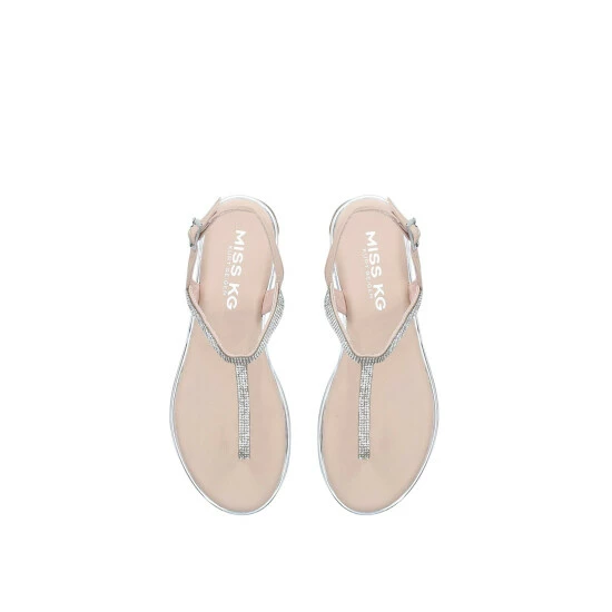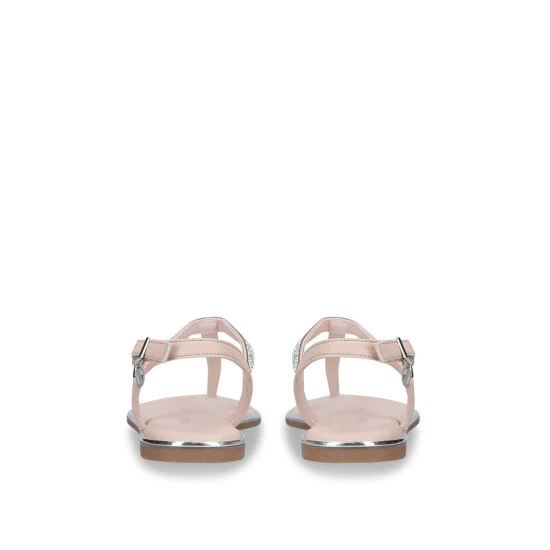 Roberto2 is a blush sandal with a diamante strap and pendent at the fastening with a flat sole.