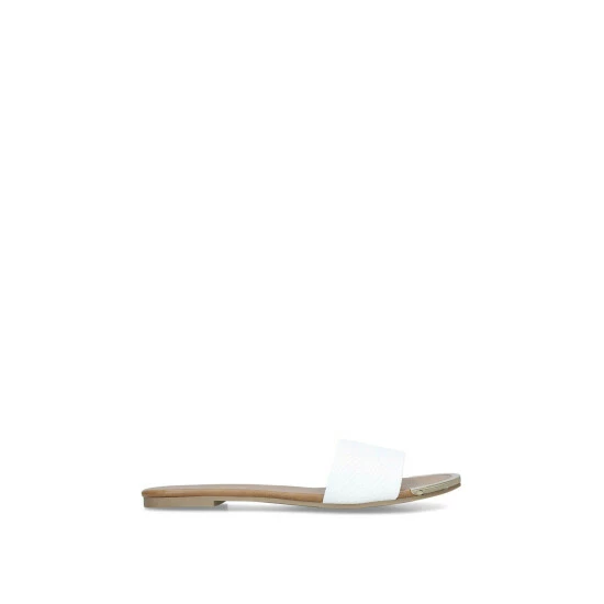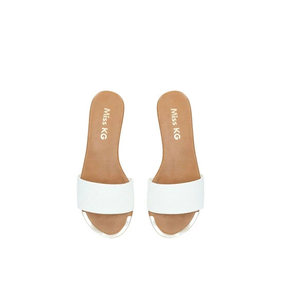 Miss KG puts a minimal-fuss spin on a footwear classic to bring you Zelda. Styled with a white strap, this slider is supported by a flat sole with a golden highlight at the toe as a chic signoff.