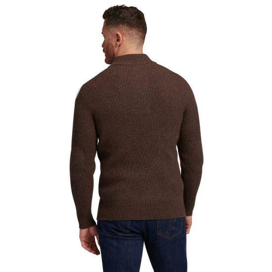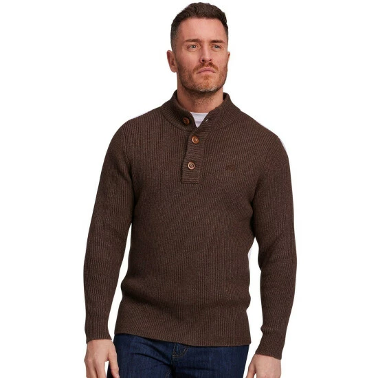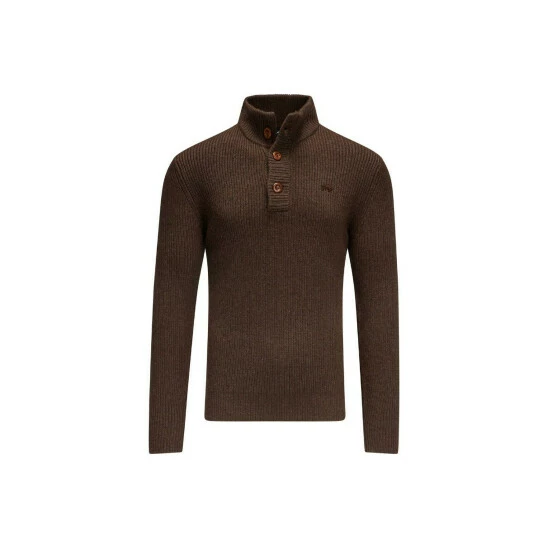 Button up against those cold winter days. Our comfortable and dapper chunky funnel neck knitwear is an easy to layer number, complimenting your favourite jeans and t-shirt combo any day of the week. Amber buttons turn function to style and sit alongside the iconic Bull logo to the left of the chest.