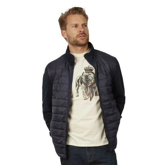 A combination of a cosy sweat and a stylish quilted jacket the hybrid jacket is the perfect piece of outerwear in between seasons. It has a soft peached lining and features the iconic bull logo to th