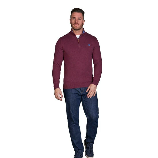 The cotton-cashmere quarter zip is a firm favourite of our knitwear collection and the luxurious hand feel of this fabric will have you reaching for it time and again. With iconic Bull logo to left of chest and leather tab zip pull.