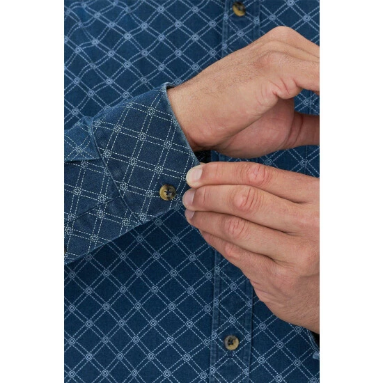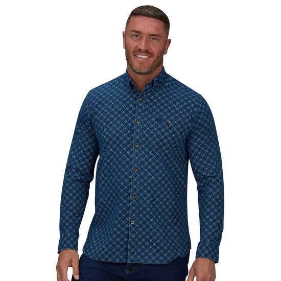 When you’re looking for a heavier weight shirt as the temperature drops, the Embroidered Jacquard Shirt is just the right player. This clean, understated pattern and traditional contrast buttons work to create a stylish all rounder whatever your style – whether paired with your favourite denim or a smart chino trouser. The iconic Raging Bull logo is stitch detailed in deep royal blue against the added feature chest pocket.
