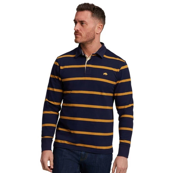 With eye-catching stripes that will stand out in any wardrobe, lead the group in a Raging Bull rugby shirt. For the perfect match day attire try pairing it with smart chinos or get on the move in jeans. A classic rugby featuring the classic Raging Bull logo and traditional rubber buttons.